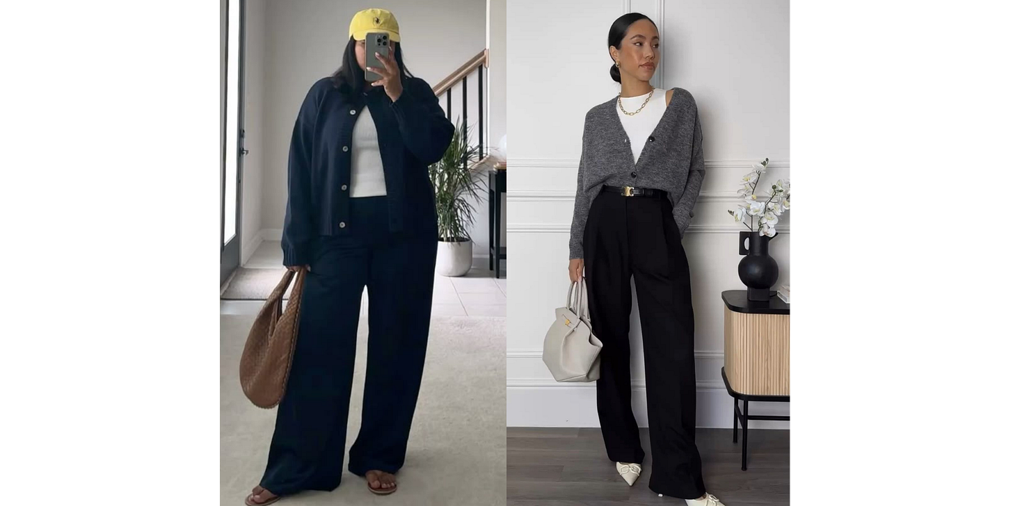Outfit Formulas are, hands down, the most important part of your look. Two people can have almost identical wardrobes, but, the way they put things together can be night and day, and still, even that’s not the complete picture. Just look at how different a cardigan + tank top + trousers can look, and how these are two entirely different vibes for two entirely different people (or days, as the case may be):